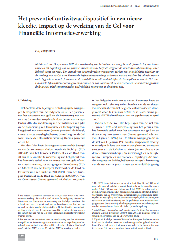"Un nouveau pas dans la lutte contre le blanchiment", Bulletin de droit fiscal et financier, 1994/4, p. 9; "Weer een stap verder in de strijd tegen het witwassen", R.D.C. / T.B.H., 1999, p. 464 |